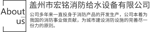 蓋州市宏銘消防給水設備有限公司坐落于風景秀麗、氣候宜人、交通便利的遼寧省蓋州市境內(nèi),這里交通網(wǎng)絡四通八達,哈大鐵路、哈大公路、沈大高速公路近在咫尺,營口港、鲅魚圈港與公司相鄰。